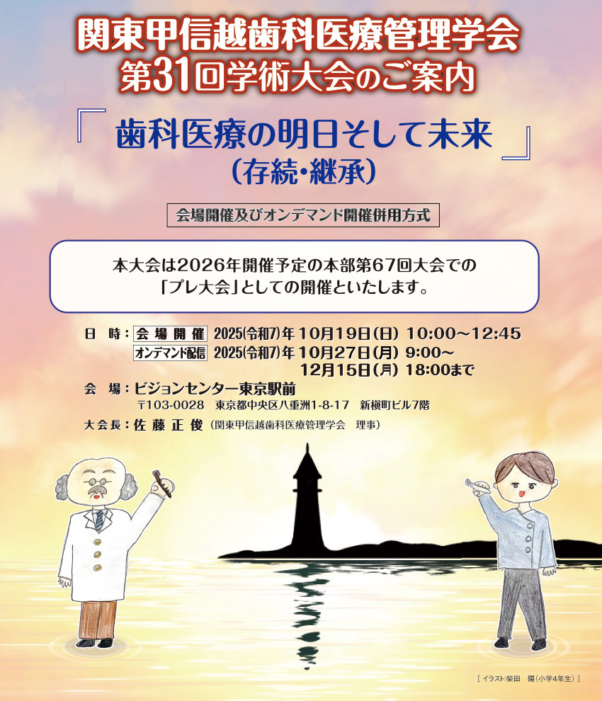2025年度 関東甲信越歯科医療管理学会総会・第31回学術大会は現地会場での開催とオンデマンド配信(オンライン事前録画等方式)を併用したハイブリッド形式で下記の通り開催いたします。